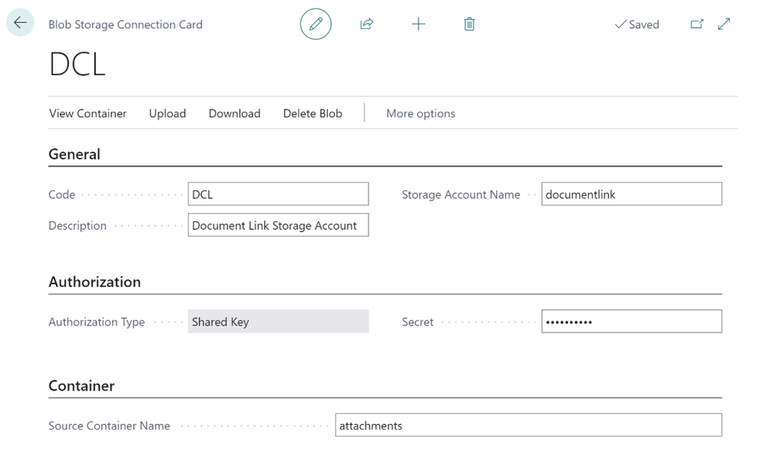 This setup is part of the Aptean Azure Connector, which offers the ability to connect your Blob storage accounts to be used in Business Central extensions. -