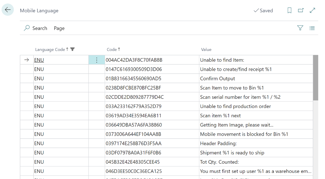 In the Business Central Mobile Setup page, you can create the default setup which also adds the default ENU translations into the Mobile translations table.