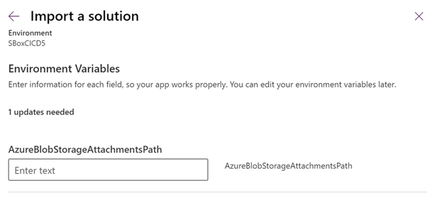 If the environment variable is already setup in the environment, the value will not be asked or updated (so that it does not overwrite customer-specific data) and can only be changed after importing by manually editing the environment variable: