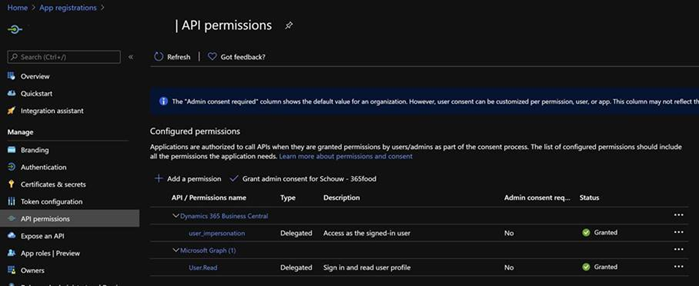 - On the navigation menu, select API permissions.
