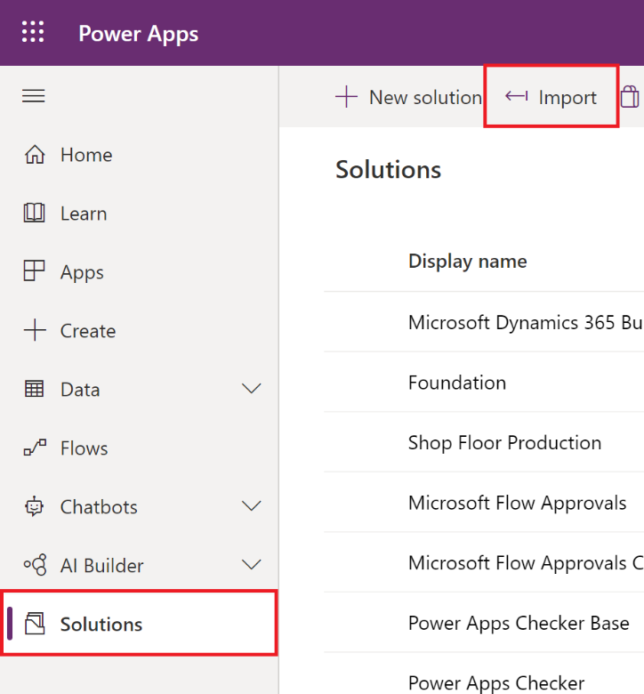 Import Shop Floor Production Power Automate Solution (Managed)