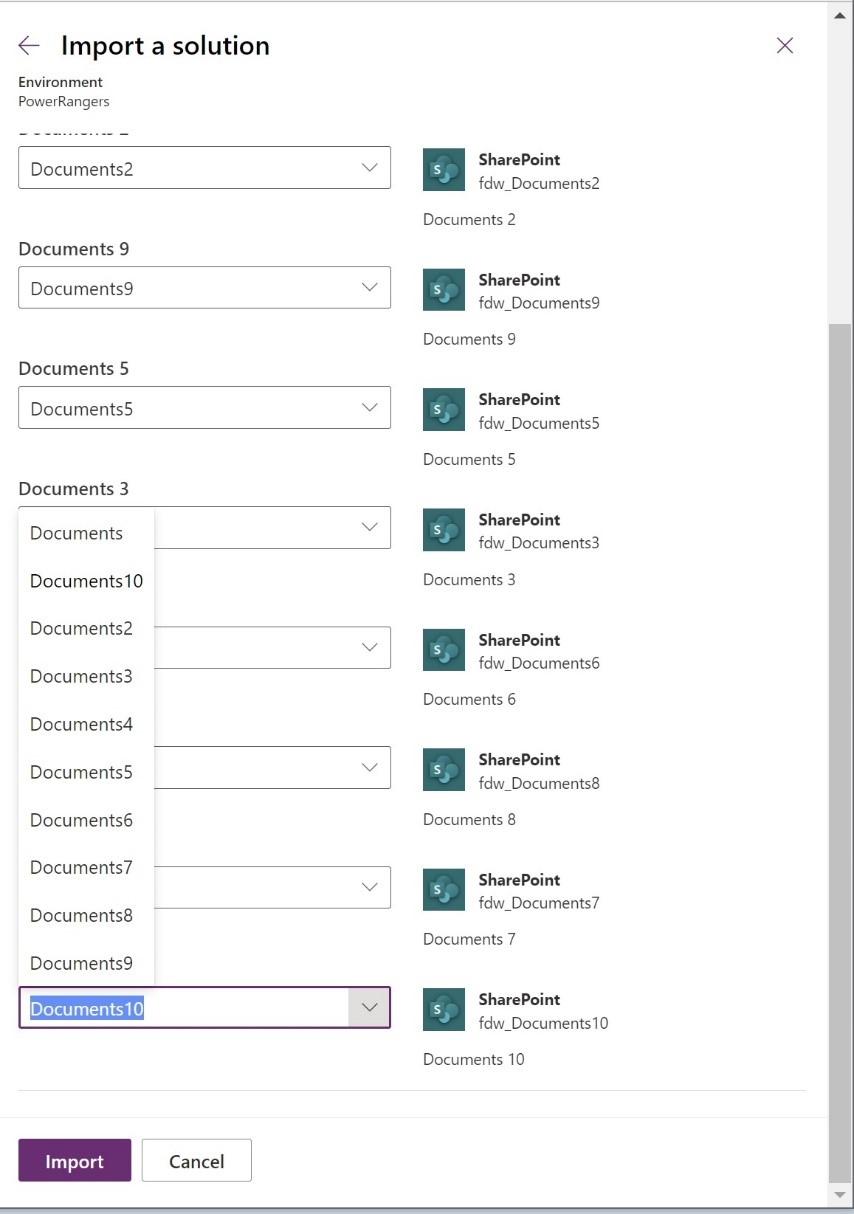 When importing the solution, both the SharePoint Connection (SharePoint Site) and the Document Library (SharePoint list) will be requested.
