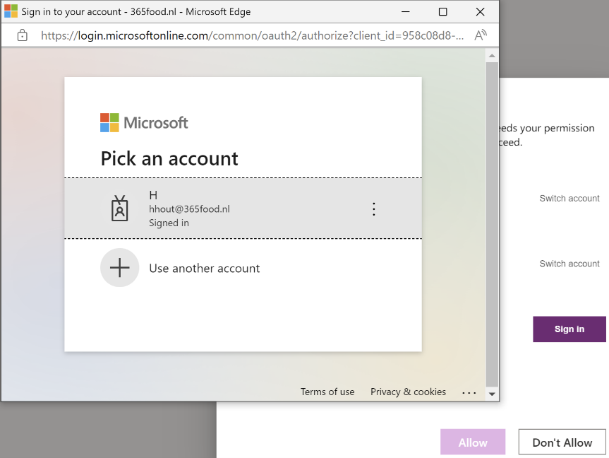 A sign in window opens to sign in with your account.