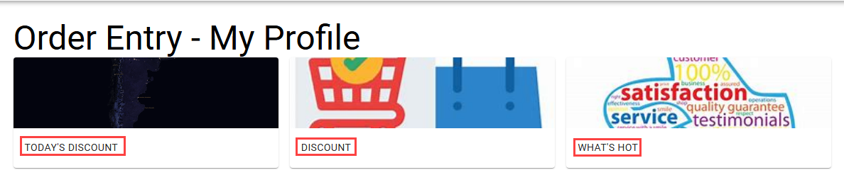 After these setups, the configured catalog is displayed as separate tiles with the specified title on the Order Entry – My Profile page.