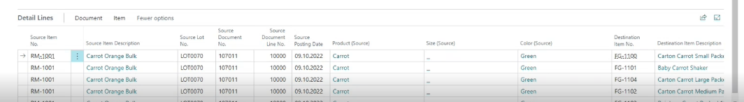| Destination Item Description | Specifies the description of the destination item depending on the accounting method used within the settlement, destination items can be different. (e.g., item produced, item sold etc.) |