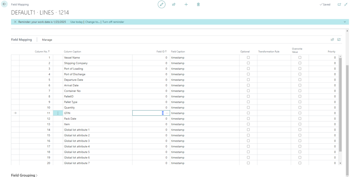 - Records are added to the Aptean Int. Table Mapping List and Aptean Table Mapping List.