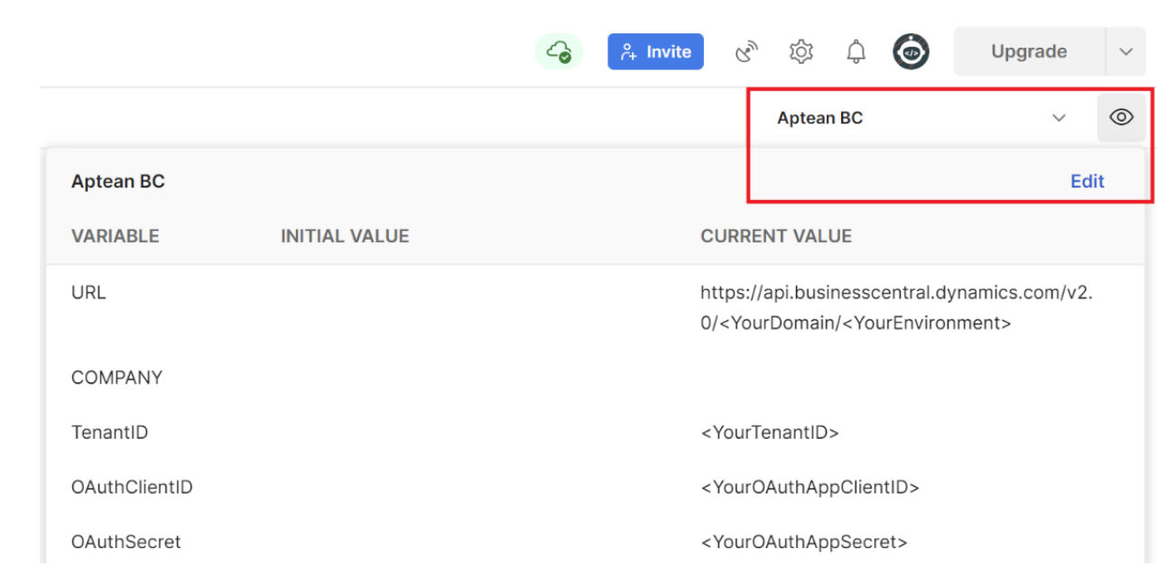 Download the latest version of Postman Aptean BC Environment Variables here.