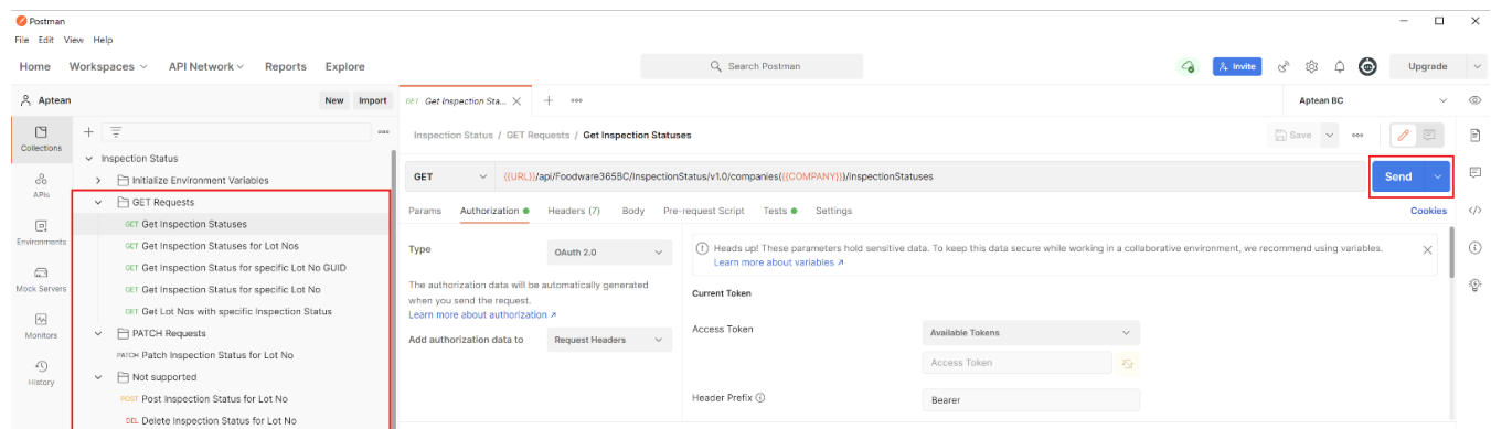 - Download the latest version of Postman Aptean Inspection Status Requests Collection here.