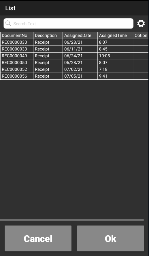 Please note that the user-assigned receipts list is only displayed when launching the activity from the home screen icon. If you access the Receive activity through the Action menu or via a quick scan, it will directly take you to the Receive page. In such cases, if a warehouse receipt was not previously assigned to the user, the program will automatically update the assigned user ID.