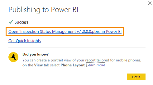 Click Open "Report" in Power BI or open Power BI in the browser.