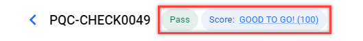 The quality check score appears on the page as a status indicator, with a colored tab showing both the pass/fail status and quality level score.The score status is indicated by colors: green for Pass and red for Fail.