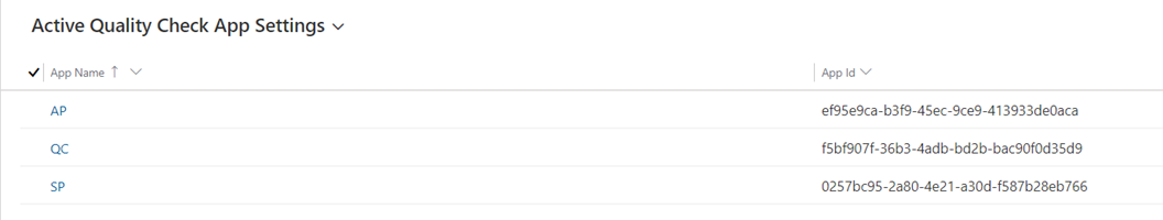 When there are multiple apps available that need to be linked to the Quality Control apps, for example, when opening the Aptean Quality Action Plans app from the Aptean Quality Control for Food and Beverage app, it is necessary to add the App ID. The following App IDs are available right now: