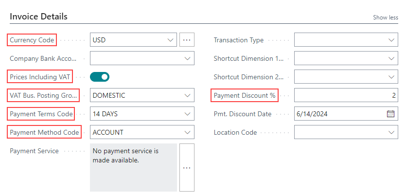 - Prices Including VAT – Select if the Unit Price and Line Amount fields on the document lines should be shown with or without VAT.