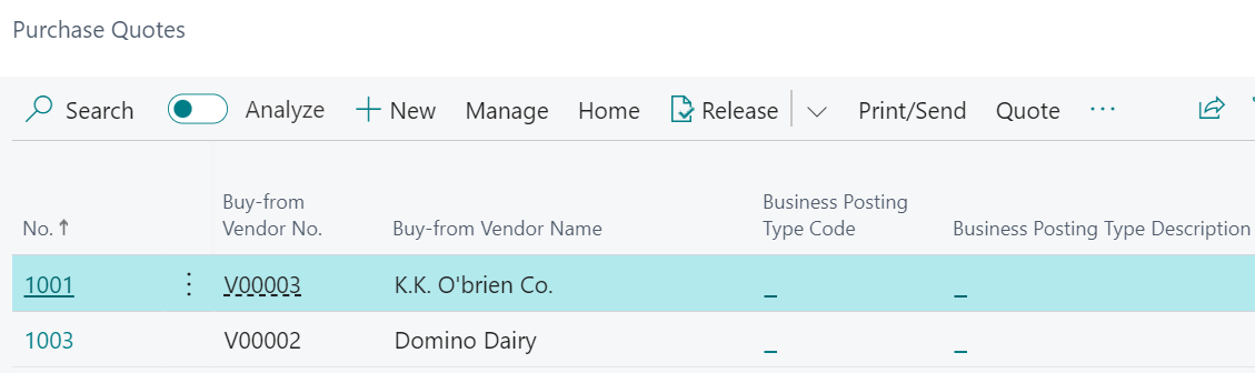 The Purchase Quotes list page opens.