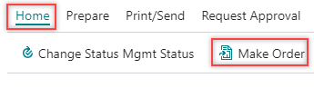 On the action bar, select Home > Make Order.