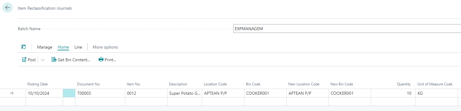 Reclass is the movement of inventory from one location to another location and from one bin to another bin.