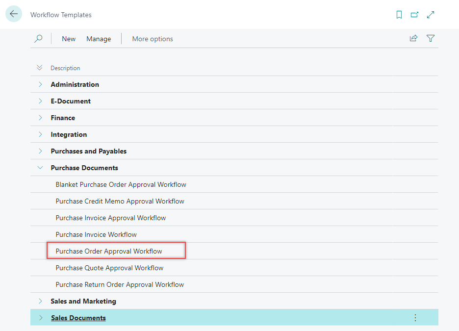 On the Workflow Templates page, select the Purchase Order Approval Workflow.