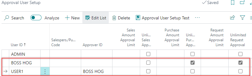 The approval users setup is complete.