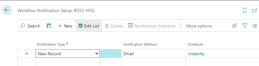 The Workflow Notification Setup page opens.