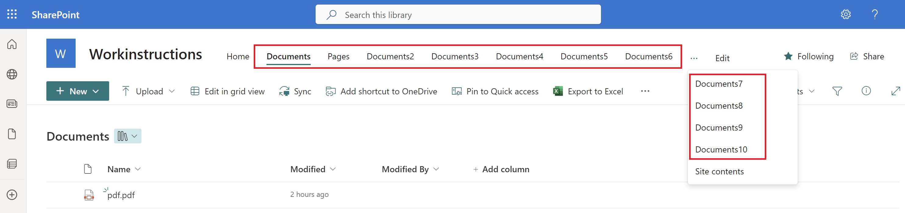 SharePoint offers the ability to create multiple document libraries. For example, the image below illustrates the creation of ten document libraries on the Workinstructions page.