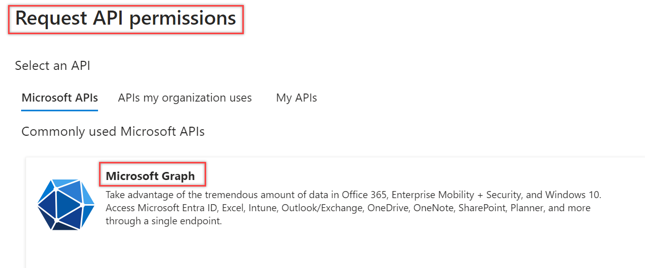 On the Request API permissions page, select Microsoft Graph > Application permissions.