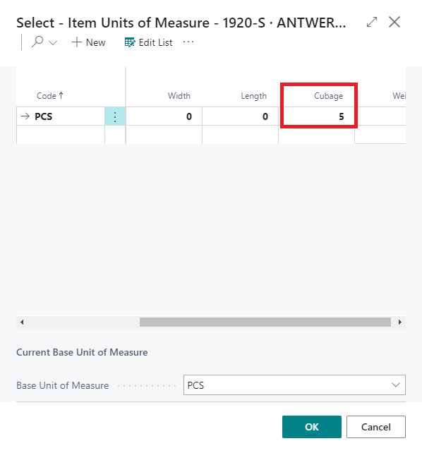 To provide the value of weight:It is mandatory to provide the values of weight and volume before sending the sales order. You must also ensure the value of volume restriction setup in Aptean Routing and Scheduling is always higher than the value of volume that you provide in Business Central.