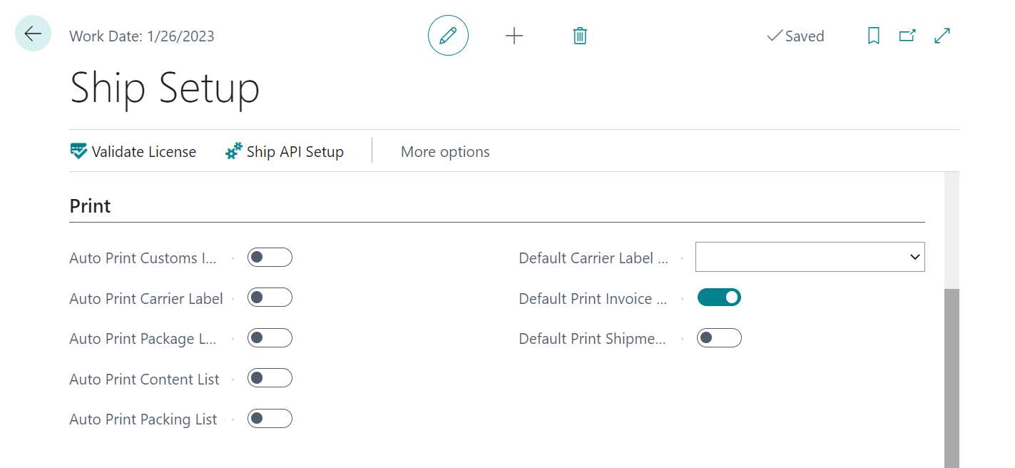 - Default Print Invoice on Post: Turn on this toggle to instruct the program to automatically place a check mark in the Print Invoice field on the Post Packages page whenever it is opened from a shipping batch record. Please note that, if you wish to select this option, you should not place a check mark in the Disable Ship and Invoice field on the General FastTab.