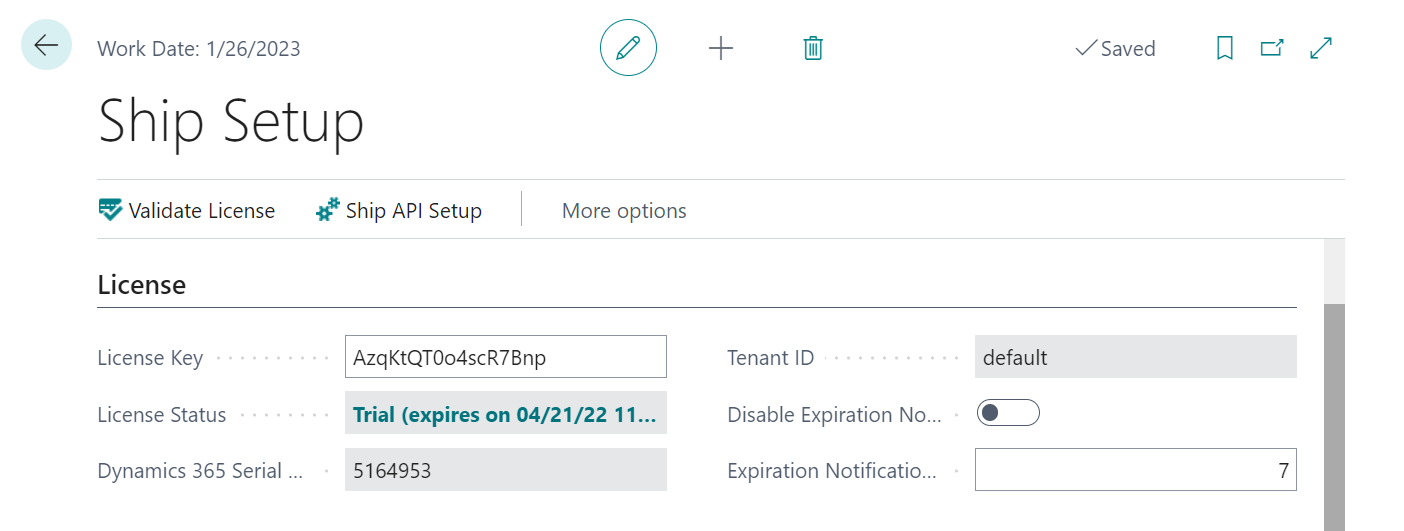 - Dynamics 365 Serial Number: The serial number from the currently installed Dynamics 365 license is displayed in this field.